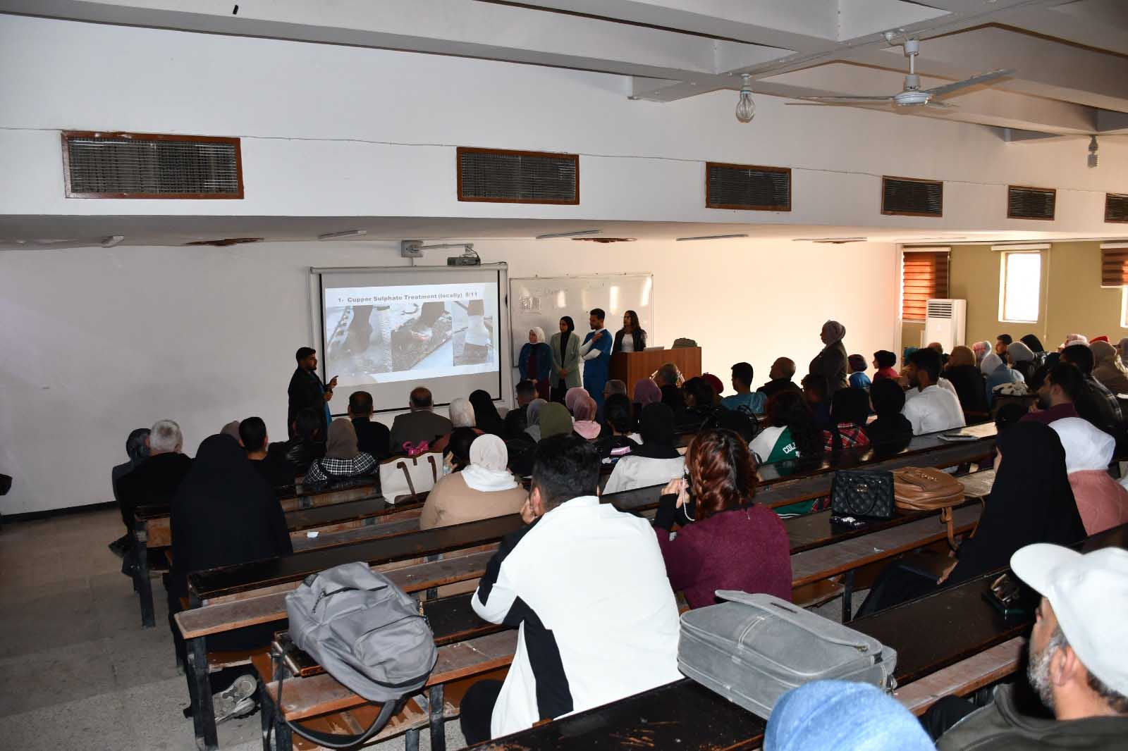 The College of Veterinary Medicine at the University of Baghdad organises discussion panels for fifth-year students weekly, featuring presentations and analyses of a range of clinical cases encountered by students during their clinical sessions throughout the week. These sessions cover surgery, obstetrics, internal medicine, and poultry diseases, all within the framework of enhancing clinical skills and critical thinking among students.